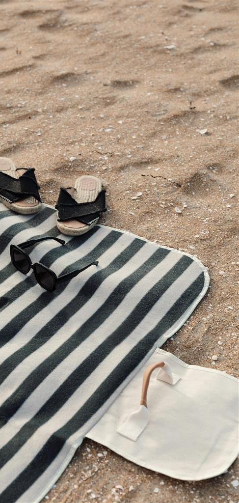 Picknickdecke aus weichem Fleece mit Details aus Baumwoll-Canvas und Kunstleder. Die Rückseite ist wasser- und schmutzabweisend.