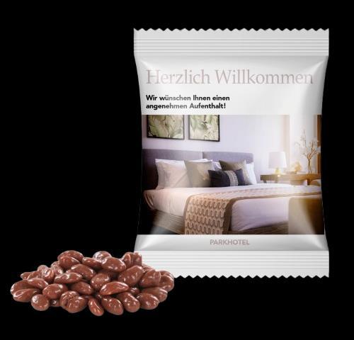 L'emballage de coussin en RPET n'est pas seulement respectueux des ressources, il attire également le regard. Rempli de friandises sucrées telles que des lentilles de chocolat colorées ou du glucose fruité, il procure joie et plaisir. Idéal comme cadeau ou petite surprise entre deux.