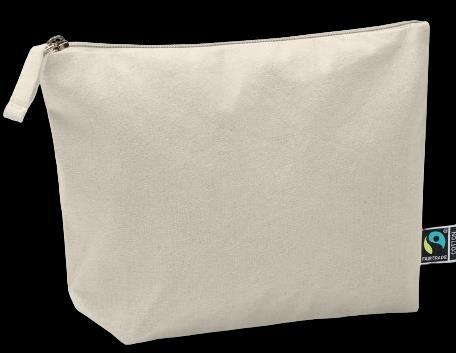 La trousse de toilette en coton équitable de couleur naturelle mesure 23 x 18 x 6 cm. Le matériel robuste avec un pli latéral et une fermeture éclair est polyvalent et idéal pour les petits voyages ainsi que pour le rangement des ustensiles les plus divers.
