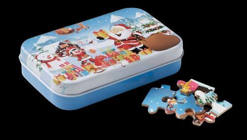 Entdecken Sie das weihnachtliche Puzzle mit 60 Puzzleteilen aus Holz, verpackt in einer charmanten Blechdose. Dieses festliche Mitbringsel sorgt für stundenlangen Spass und Unterhaltung für Kinder –perfekt für die Chlaus-Zeit.