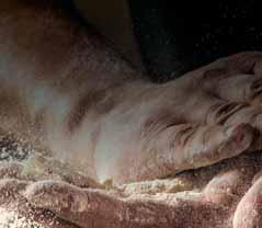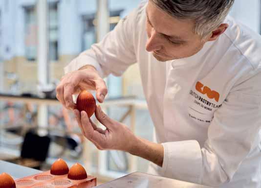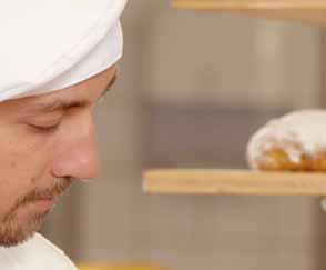 de smaak van alle andere ingrediënten hieronder. Hij verwerkt de amandelspijs volledig in het deeg. ‘Daardoor verhoog je het amandelgehalte en verlaag je het suikergehalte’, aldus Gierig.