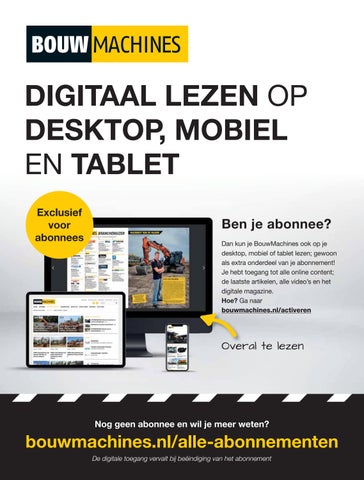 Dan kun je BouwMachines ook op je desktop, mobiel of tablet lezen; gewoon als extra onderdeel van je abonnement! Je hebt toegang tot alle online content; de laatste artikelen, alle video’s en het digitale magazine.