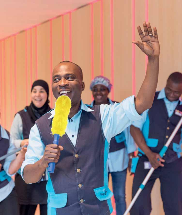 l voor de start in 2010 had ik duidelijk voor ogen wat voor soort schoonmaakbedrijf ik wilde. Een bedrijf dat ik een mkb-familiebedrijf noem, in die zin dat er een warme en collegiale sfeer moest zijn. Met en voor elkaar werken, informeel zijn en zoals mijn vrouw Karin het formuleert ‘een bereikbare werkgever zijn en geen baas’. Niet naïef zijn maar tussen de mensen staan, iedereen bij voor- en achternaam kennen. Dat lukt tot dusver, elke medewerker staat in mijn telefoon. Natuurlijk heeft dat met de bedrijfsomvang te maken, maar tot 150 medewerkers is dat te realiseren.”