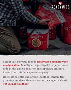 veel groter dan hier. Met vooruitziende blik haalde de Deen in 2021 het van oorsprong Amerikaanse merk ReadyWise (opgericht in 2009 onder de naam Emergency Essentials) naar het Verenigd Koninkrijk. Een jaar later volgden andere landen in Europa. Berknov: “Het totale ReadyWise-assortiment omvat tientallen maaltijden, snacks en drankjes in allerlei porties. Na een marktanalyse besloten wij hier destijds met een kleiner aanbod te beginnen. Deels met bestaande maaltijden, deels met producten puur voor de Europese markt.”