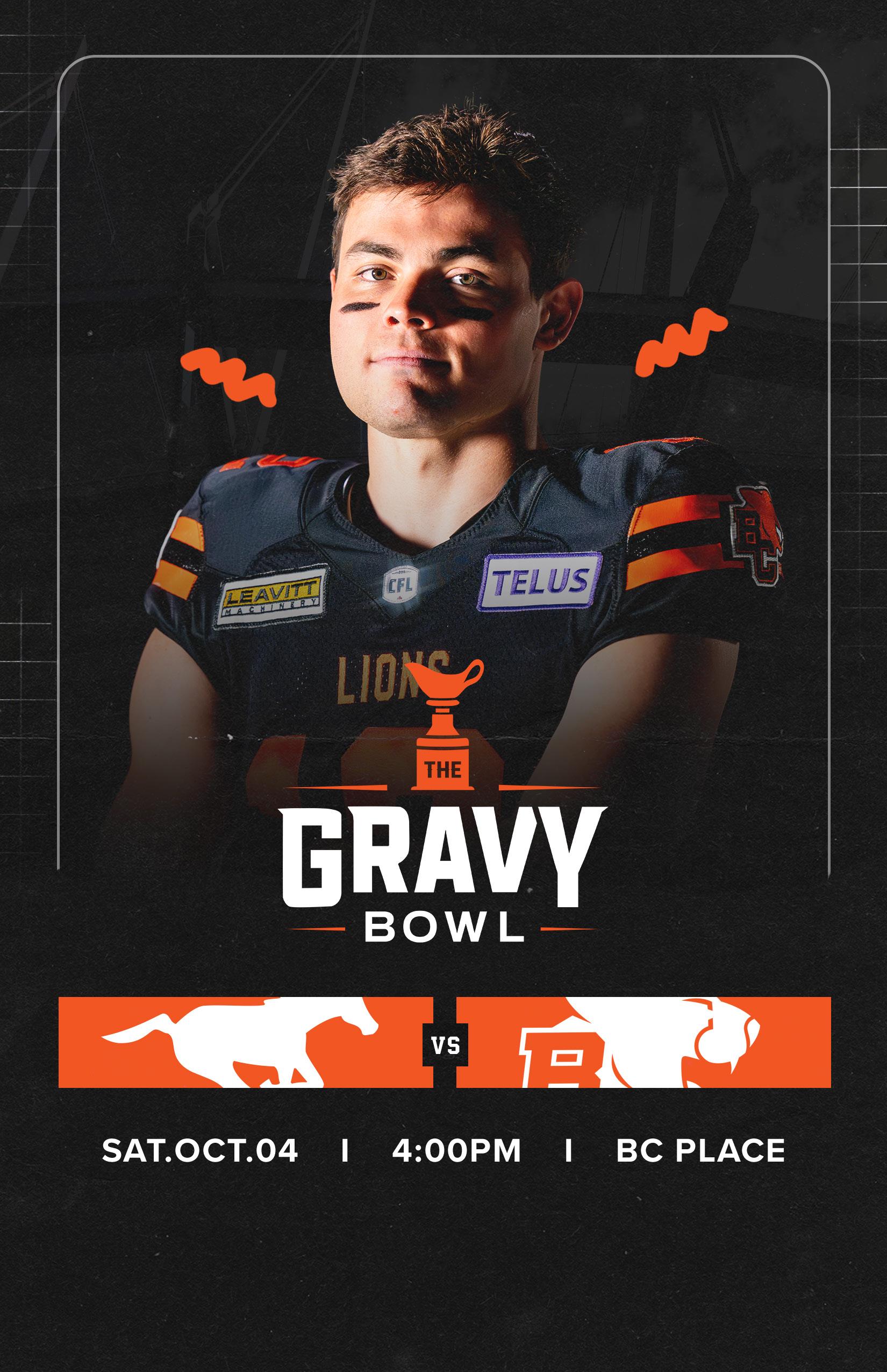 And the action kicks off well before kickoff. With an early start, The Gravy Bowl is packed with family-friendly fun, starting with a the BC Lions Backyard on Terry Fox Plaza featuring turkey tastings, a pie-eating contest, and plenty more. From food to football, this is BC’s favourite fall tradition, so settle in and get ready for a feast of football at BC Place!