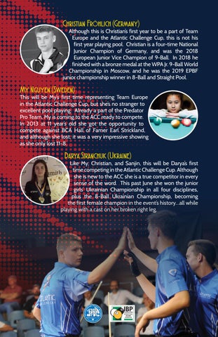 Although this is Christian’s first year to be a part of Team Europe and the Atlantic Challenge Cup, this is not his first year playing pool. Christian is a four-time National Junior Champion of Germany, and was the 2018 European Junior Vice Champion of 9-Ball. In 2018 he finished with a bronze medal at the WPA Jr. 9-Ball World Championship in Moscow, and he was the 2019 EPBF junior championship winner in 8-Ball and Straight Pool.