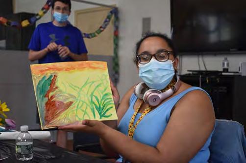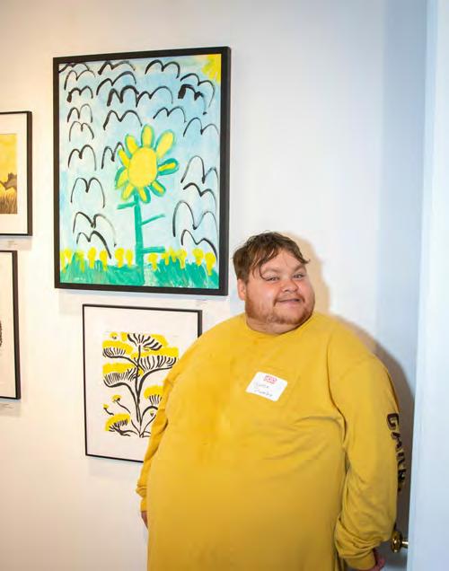 Justin poses next to his painting at The Lichtenstein Center for the Arts. Several BCArc individuals took part in the Community Access to the Arts' annual art show, which displayed at The Clark and The Lichtenstein Center for the Arts throughout the summer.