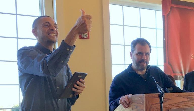 to of the crowd at the Berkshire Hill Country Club while accepting his Achievement Award at BCArc’s annual meeting. Frank works at Mountain Lodge in Housekeeping.