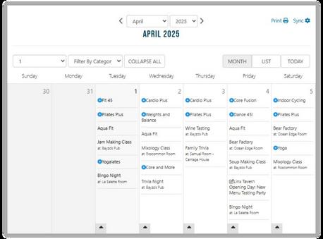 From this tab, you can view and register for any event being held at ocean edge. From the Club Calendar, you also have a ability to filter based on the event category you are interested in.