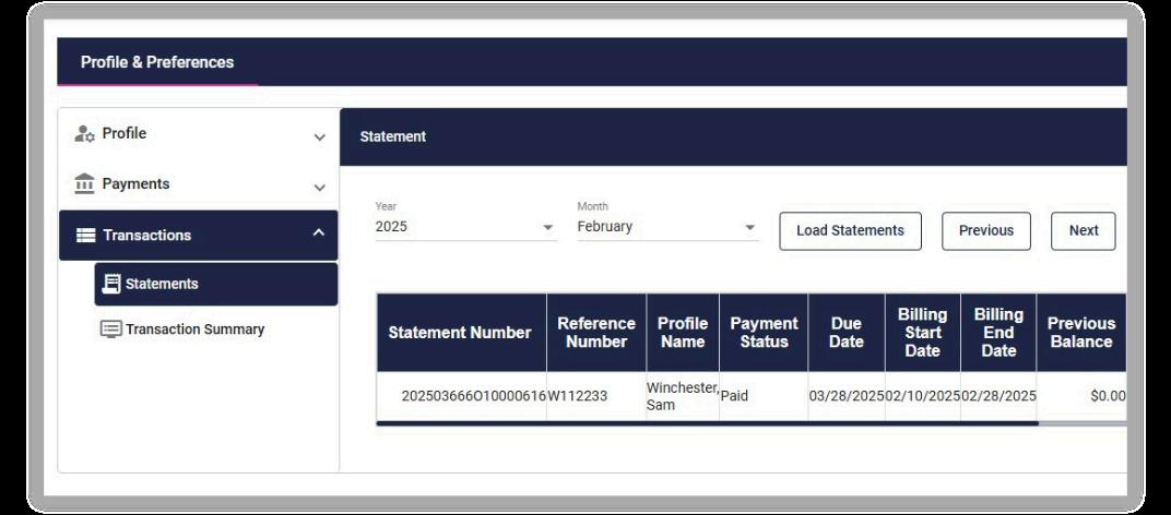 Scroll down to the Transactions table and click Statements. This is where you’ll see everything that was charged to your account that month. To see an itemized list, select Transaction Summary to see an itemized list and the receipts.