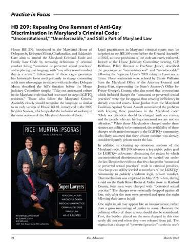 Practice in Focus HB 209: Repealing One Remnant of Anti-Gay Discrimination in Maryland’s Criminal Code: