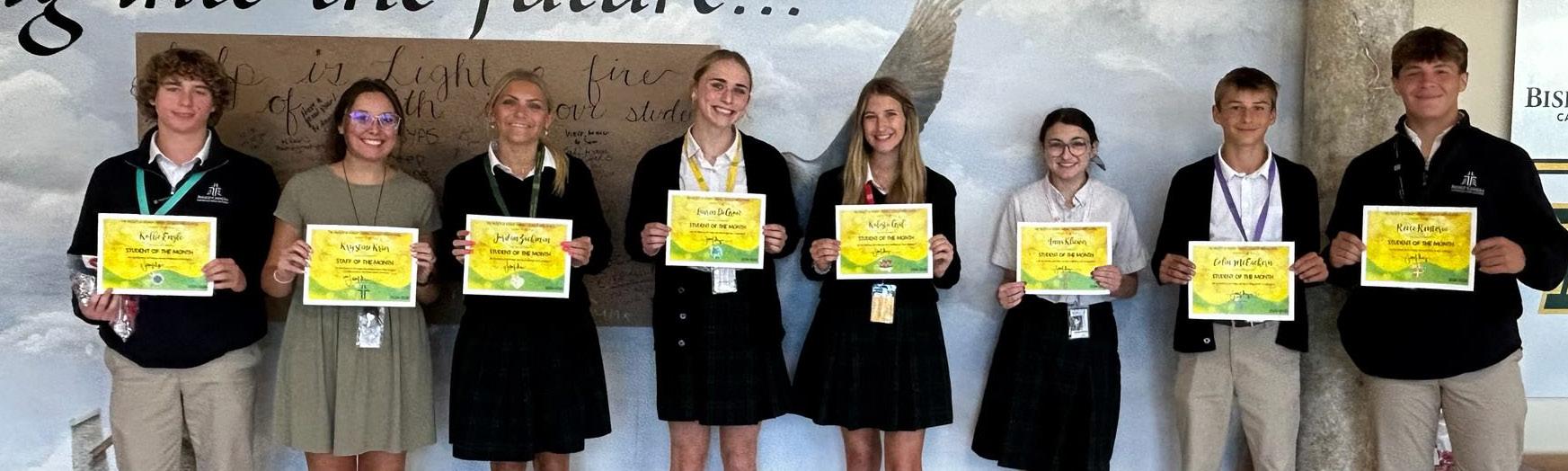 Eagles for Life, under the direction of BC FACS teacher Emma Diskin, participated at the Life Chain and prayed the rosary at the abortion clinic. These Eagles won the “Super Fan” hats for their dedication to our Catholic community!