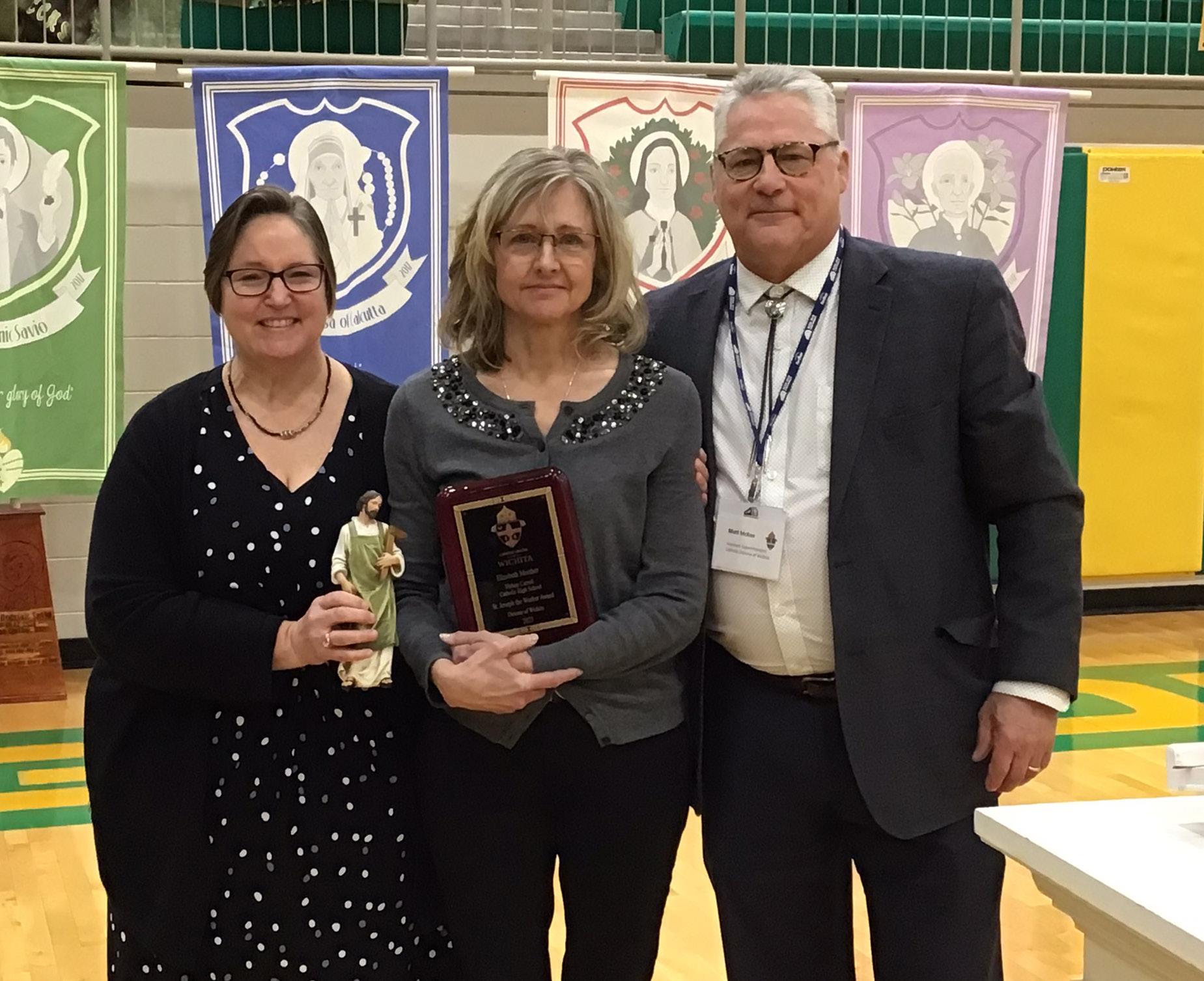 Julie (Sanders) Stuckey ‘89 received the St. Kateri Tekawitha award for her leadership and dedication as a resource teacher at St. Peter’s Catholic School.