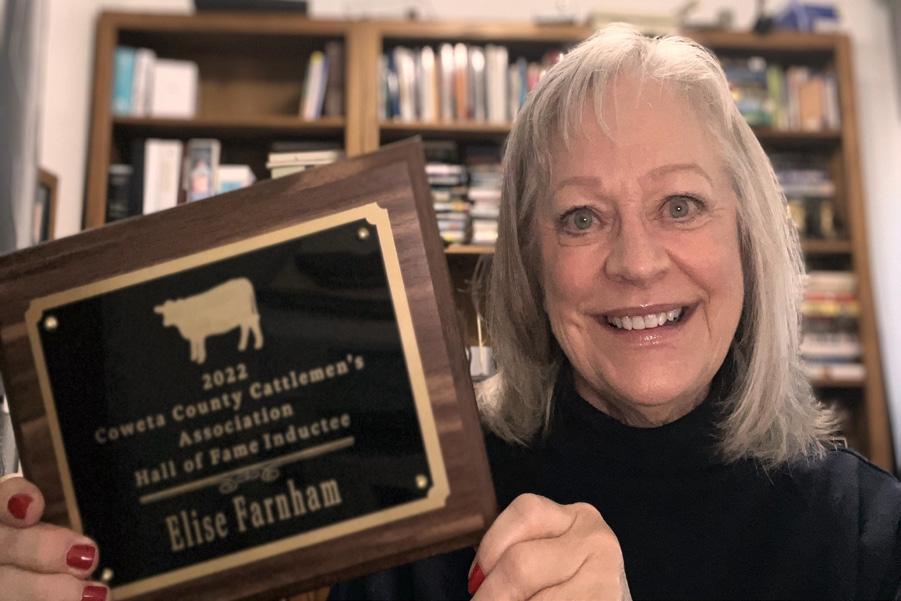 Elise (Baalmann) Farnham ‘70 was inducted into the Coweta County Cattlemens Association’s Hall of Fame (Georgia) in December of 2022. Elise was their first female president and raised red Angus cattle. Elise now resides in Texas.