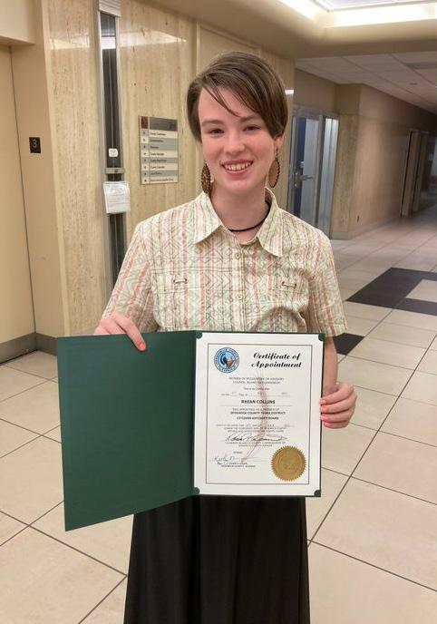 BCCHS senior Rhian Collins was sworn in as a member of the Sedgwick County Commission’s District III Advisory Board. Celebrating with her are proud parents Shannon (Rooney) Collins '94 and Tim Collins '93.