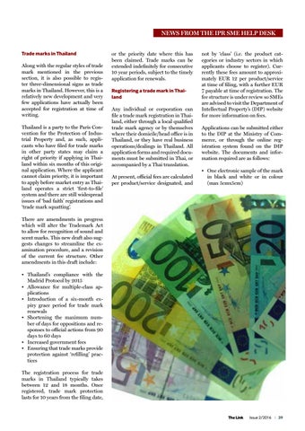 News from the IPR SME Help Desk Trade marks in Thailand Along with the regular styles of trade mark mentioned in the previous section, it is also possible to register three-dimensional signs as trade marks in Thailand. However, this is a relatively new development and very few applications have actually been accepted for registration at time of writing. Thailand is a party to the Paris Convention for the Protection of Industrial Property and, as such, applicants who have filed for trade marks in other party states may claim a right of priority if applying in Thailand within six months of this original application. Where the applicant cannot claim priority, it is important to apply before market entry as Thailand operates a strict ‘first-to-file’ system and there are still widespread issues of ‘bad faith’ registrations and ‘trade mark squatting’.