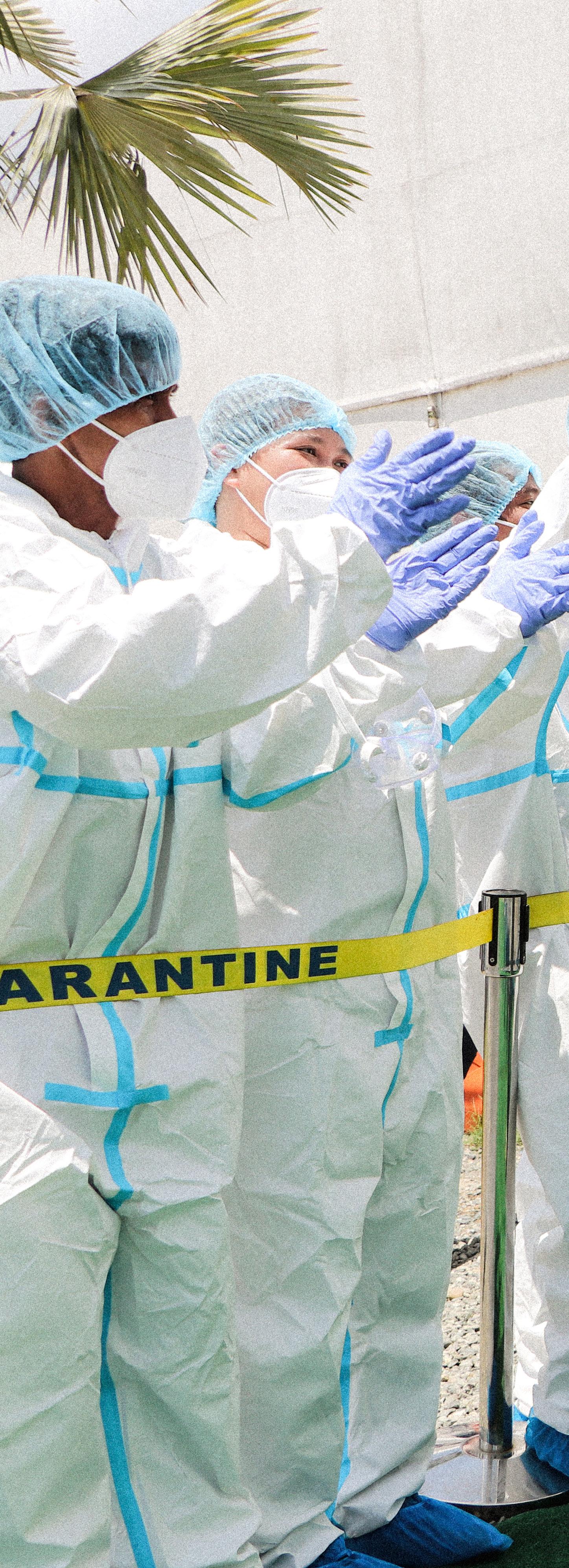 Frontliners at the temporarily converted government build ing turned quarantine facility in New Clark City prepare for the arrival of patients