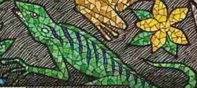 he said. The final design includes a mosaic of images with free-standing sculptures. Colored tiles will depict flora and fauna, while stainless steel will form a giant dragonfly and lotus flower.