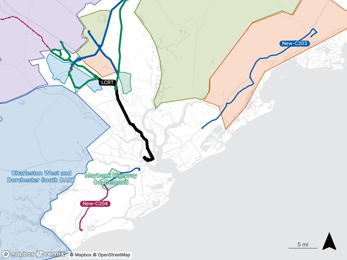 Route C203 would operate every hour 7 days/week along Maybank Highway on Johns Island.
