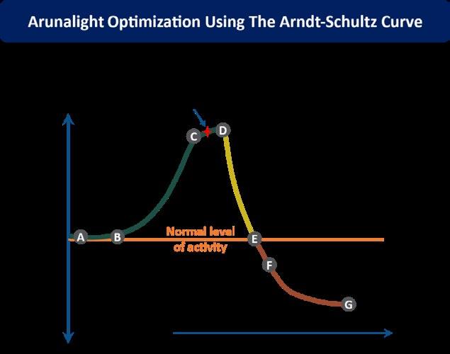 ArunaLight was designed with the Arndt-Schultz Curve in mind, ensuring it delivers light therapy within the “sweet spot” for maximum biological response. This optimization includes: