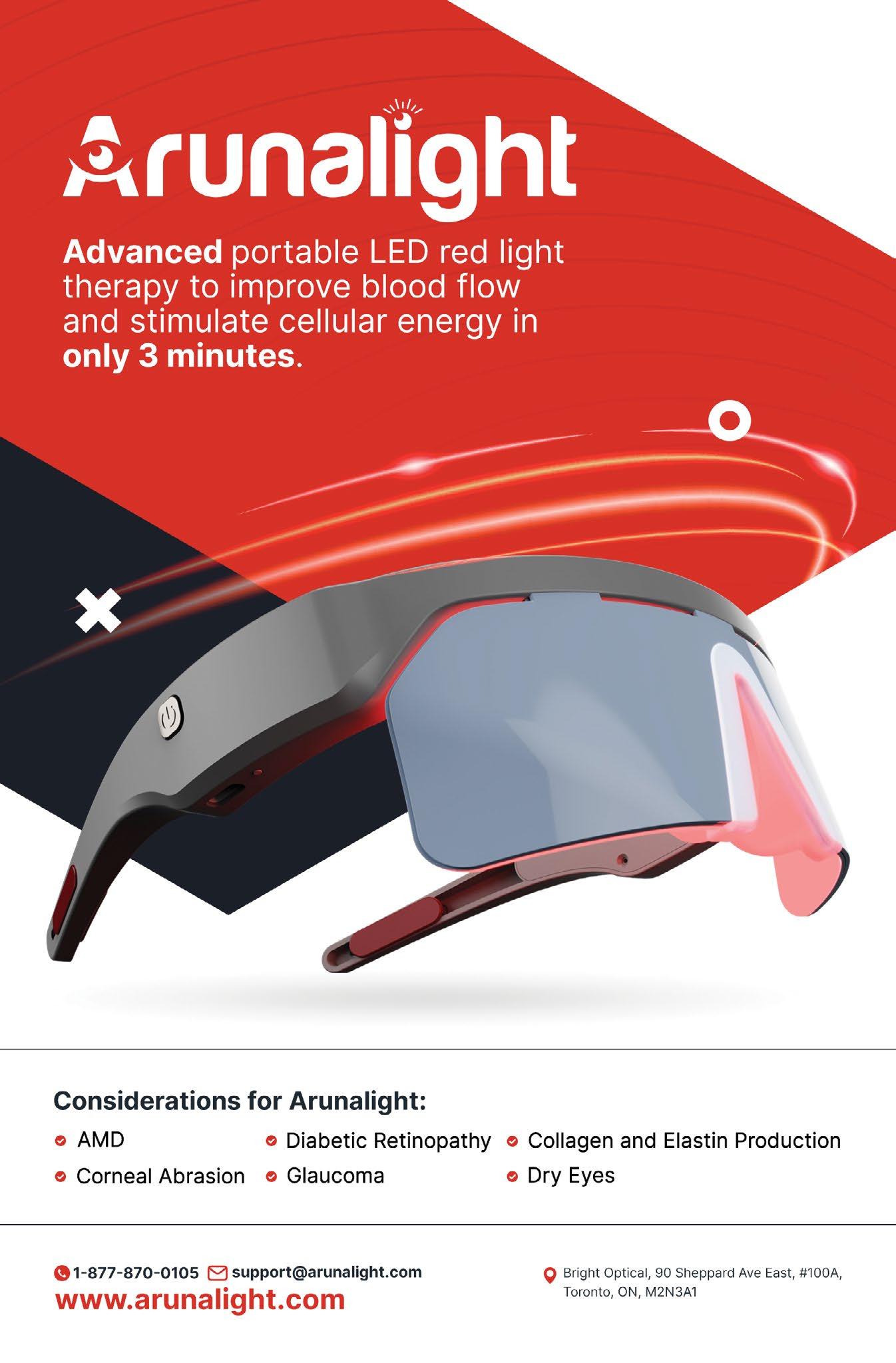 ArunaLight was designed by Ophthalmologists, Optometrists, and leading researchers in photobiomodulation therapy. Unlike other red light devices, Arunalight is a home-based therapy that has been engineered specifically for eye health. Arunalight delivers red light at an optimal wavelength and intensity, targeting the mitochondria within cells to enhance energy production and facilitate repair. This precise application promotes better ocular health by improving blood flow, reducing oxidative stress, and rejuvenating the retina.