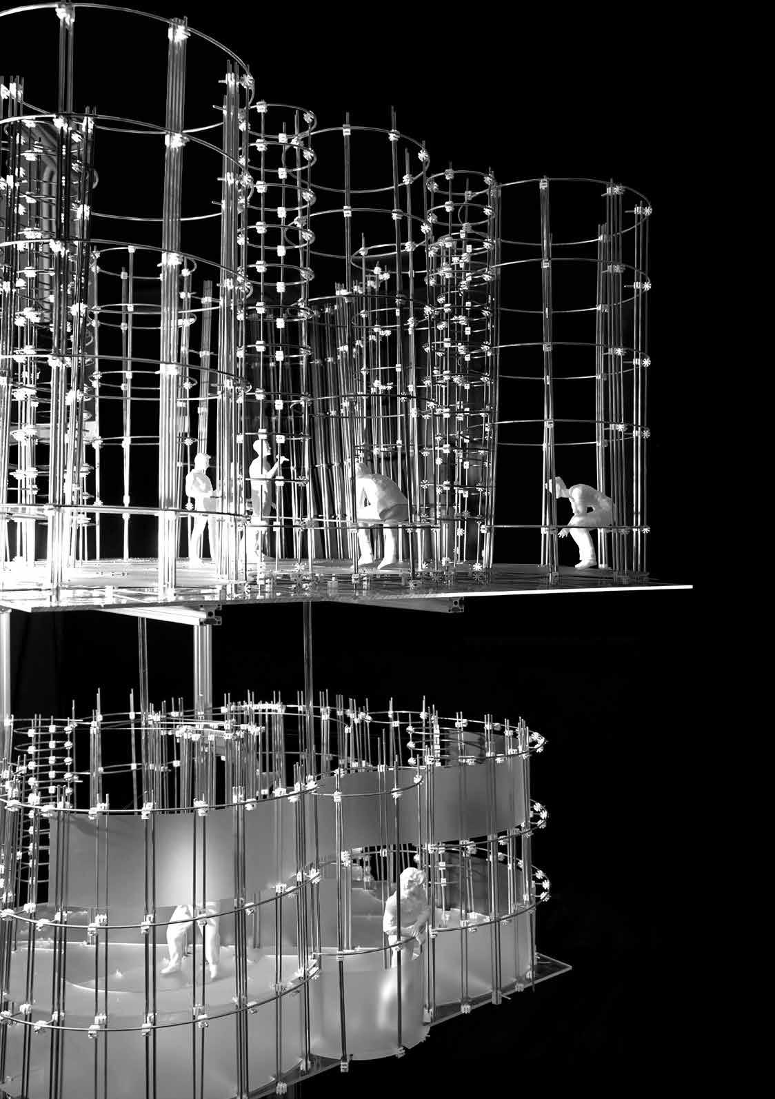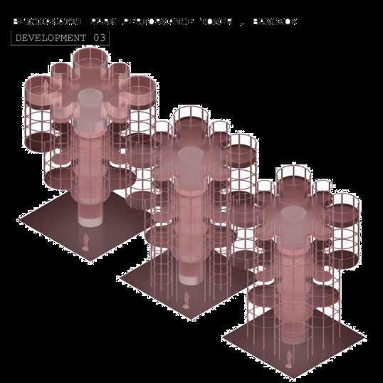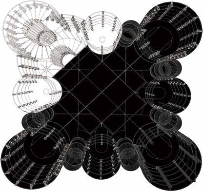 1. CIRCULAR SEATINGS: a set of seating typology with various group seating sizes, various positioning relative to the stage 2. TOWERS: a set of seating typology but stacked into a connected tower format of multuple levels.