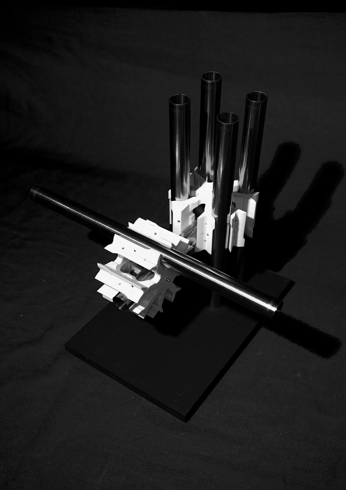 2. Allowing tube to criss cross, at the joint with 2 layers of horizontal channels, instead of point weld at the node.It allows more tolerance during composing which increase the freedom for spontaneous creation.