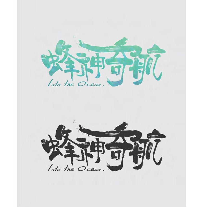 以迪士尼動畫的童話風格作為出發點和聯想,以書法字基底取橫,帶出海風吹拂的 飄逸感,同時書法獨有的勾勒與筆刷感,能更強烈的傳達航行與歷險的力量感,而 色彩的部分則以渲染的方式,模擬出海浪波動的光澤以及大自然的綠意盎然。