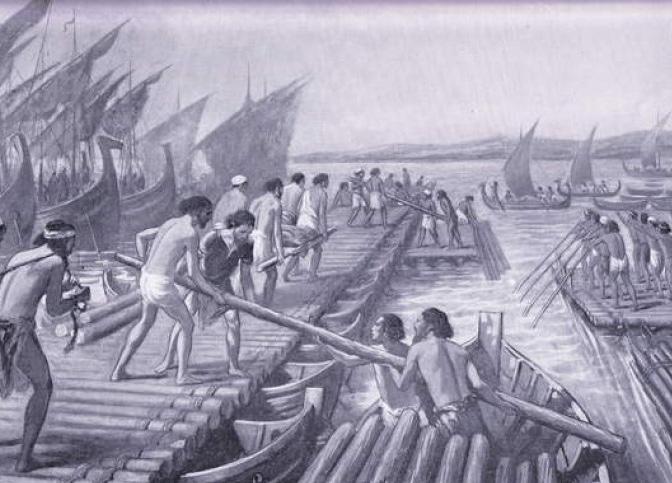 About 510–490 b.c.e. Persian Bridges and Canals Darius I and Xerxes have temporary bridges built to cross the Hellespont during the Greco-Persian Wars.