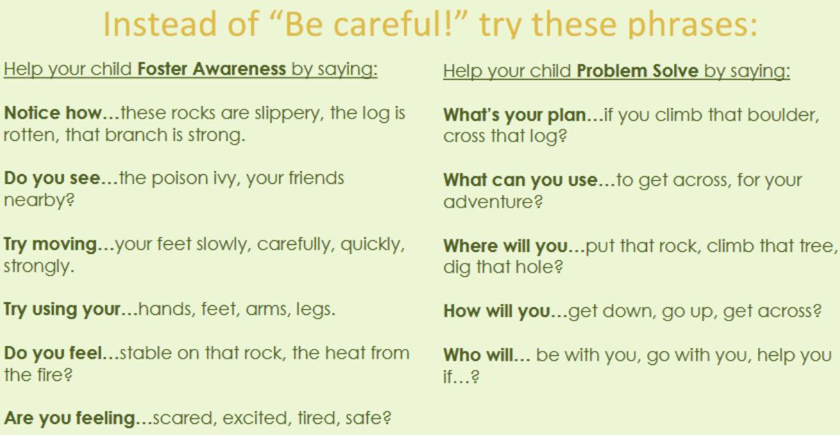 · Build resilience by encouraging children to engage in risky play, test their limits and problem solve for themselves