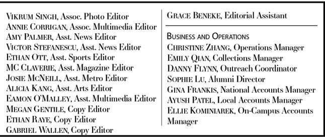 Julia KiersznowsKi Assoc. News Editor Victor stefanescu Asst. News Editor amy Palmer Asst. News Editor megan Kelly News Editor