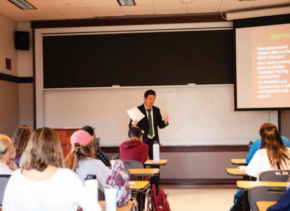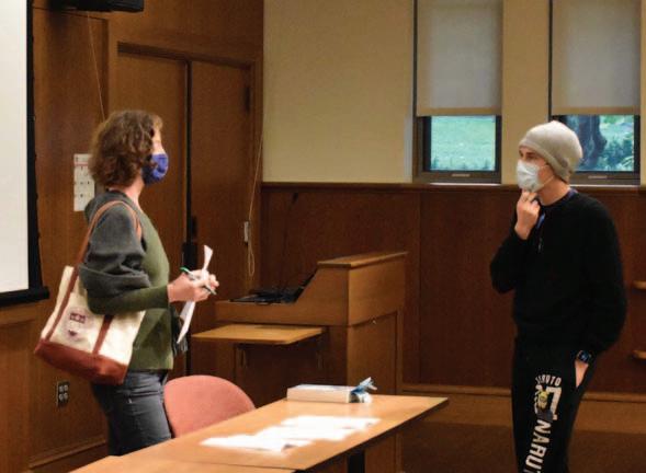 Students and professors alike settled into the plush armchairs of the Connolly House on Wednesday evening for the journalism pr ogram’s first in-person event since the start of the pandemic.