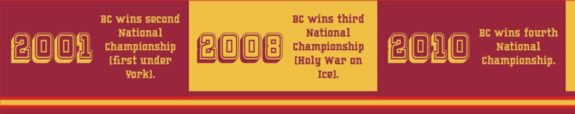 matic bid to the NCAA Tournament for the fourth time in as many years. Wins over Maine and Michigan sent the Eagles to the National Championship game, setting them up against North Dakota, which had devastated BC in the title game one year prior.