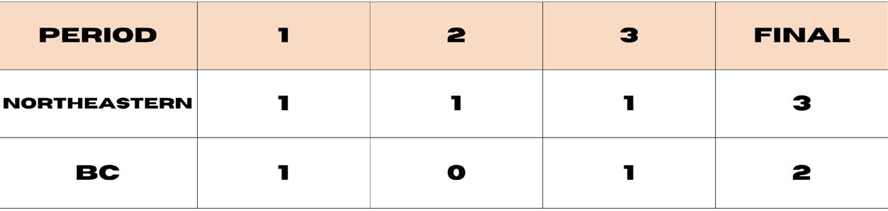 closely by Jönsson’s. Despite the strong performances in net, Northeastern’s Shannon found the back of the goal and tallied her 16th point of the season, solidifying a comfortable 3–1 Husky lead.