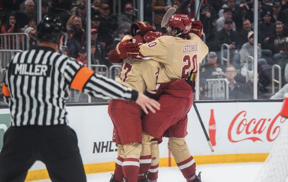 night with a 4–3 overtime victory, upsetting then-No. 12 Northeastern. Sophomore Cole Hutson scored the game-winning goal in overtime, lifting then-No. 18 BU to a statement victory. Overall, though, the Terriers’ season has often stood in stark contrast to that high.