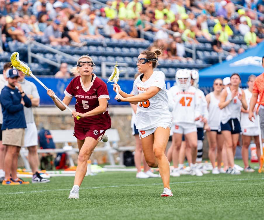 After sustaining a wrist injury early in the second quarter, Cassidy Weeks returned to score the Eagles 10th goal after rolling out from the corner before assisting LoPinto’s second of the game to give the Eagles a 11–3 lead going into halftime.