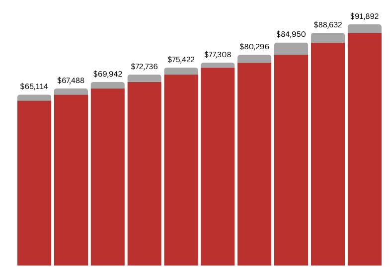 The increase is the smallest in the past three years, but it is still the third-largest hike in the last decade.