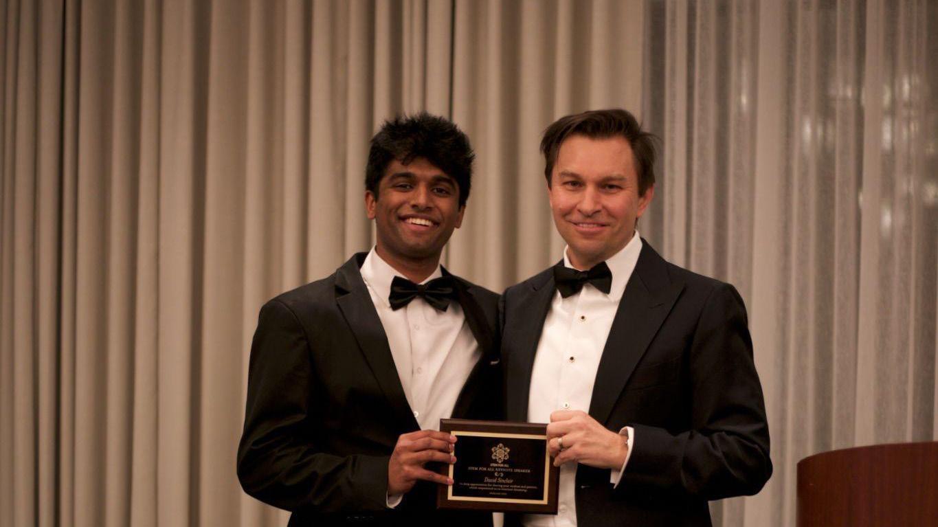 with the deans of CSOM, Provost and Dean of Faculties David Quigley, and University President Rev. William P. Leahy, S.J.