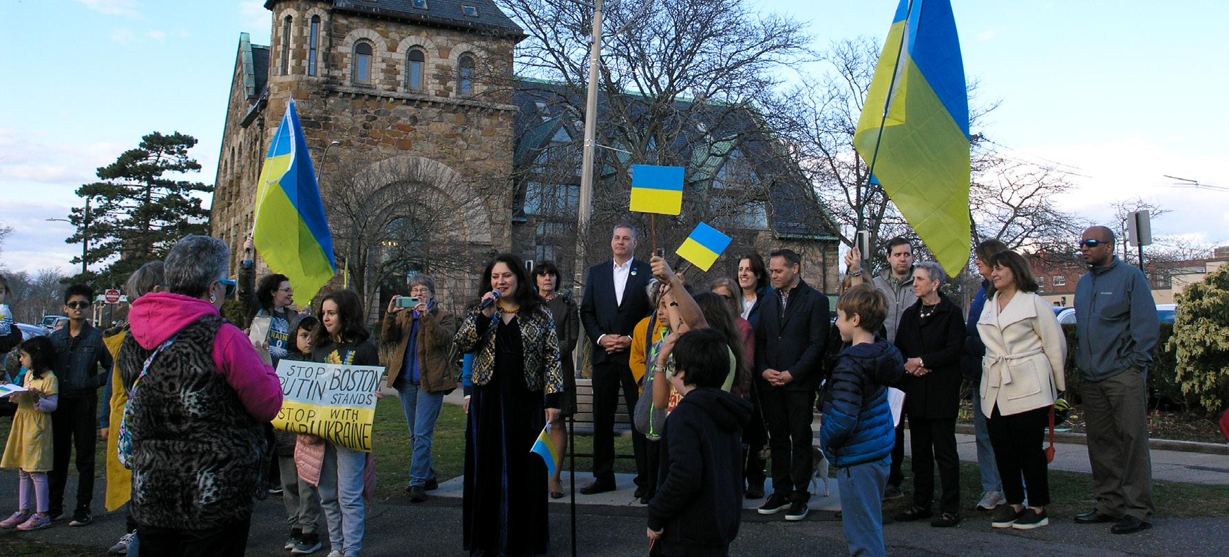 State-level politicians at the rally said the Commonwealth of Massachusetts has a role to play in the conflict as well.