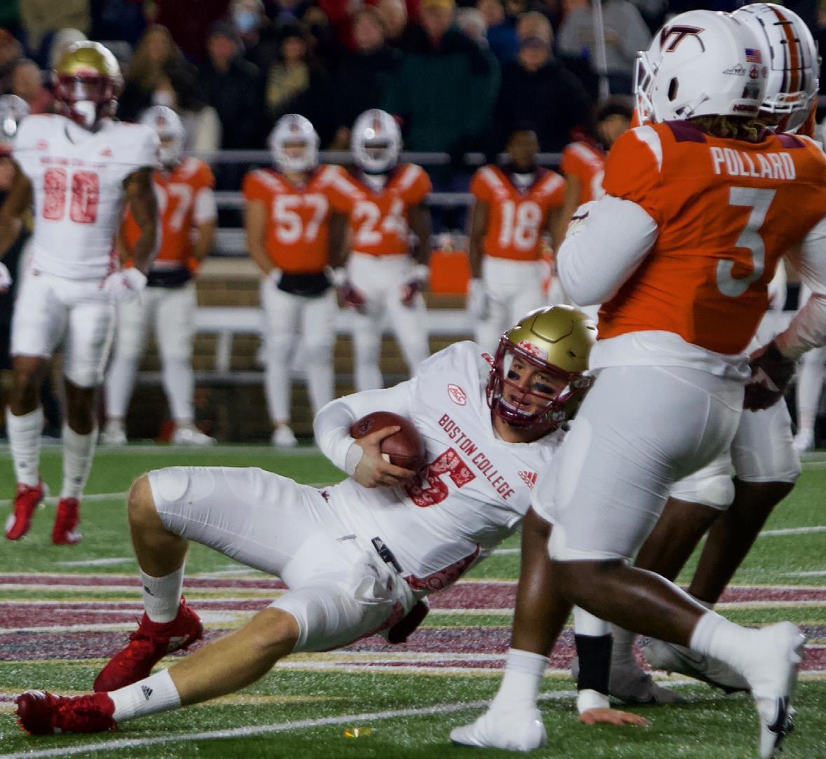 While it was far from perfect, the Eagles’ defense provided plenty of opportunities for the o ense to get back in the game. BC forced the Hokies to punt seven times, but the o ense only garnered 10 points all night. Missed opportunities were a theme, including when Kam Arnold