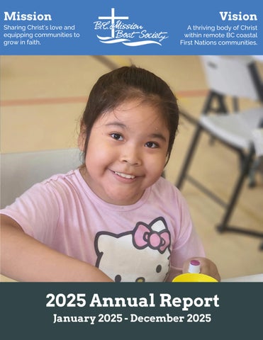 Welcome to the BC Mission Boat Society! Our Vision: A thriving body of Christ within remote BC coastal First Nations communities Our Mission: Sharing Christ’s love and equipping communities to grow in faith.