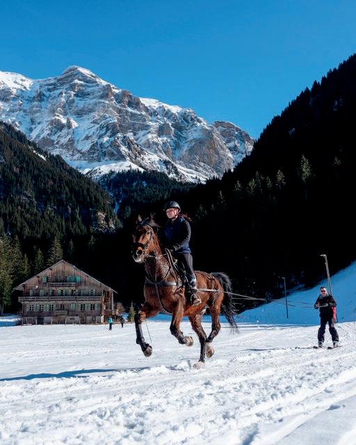 Un cheval, de la neige et des skis, voilà le combo magique pour faire du Ski-Joëring !