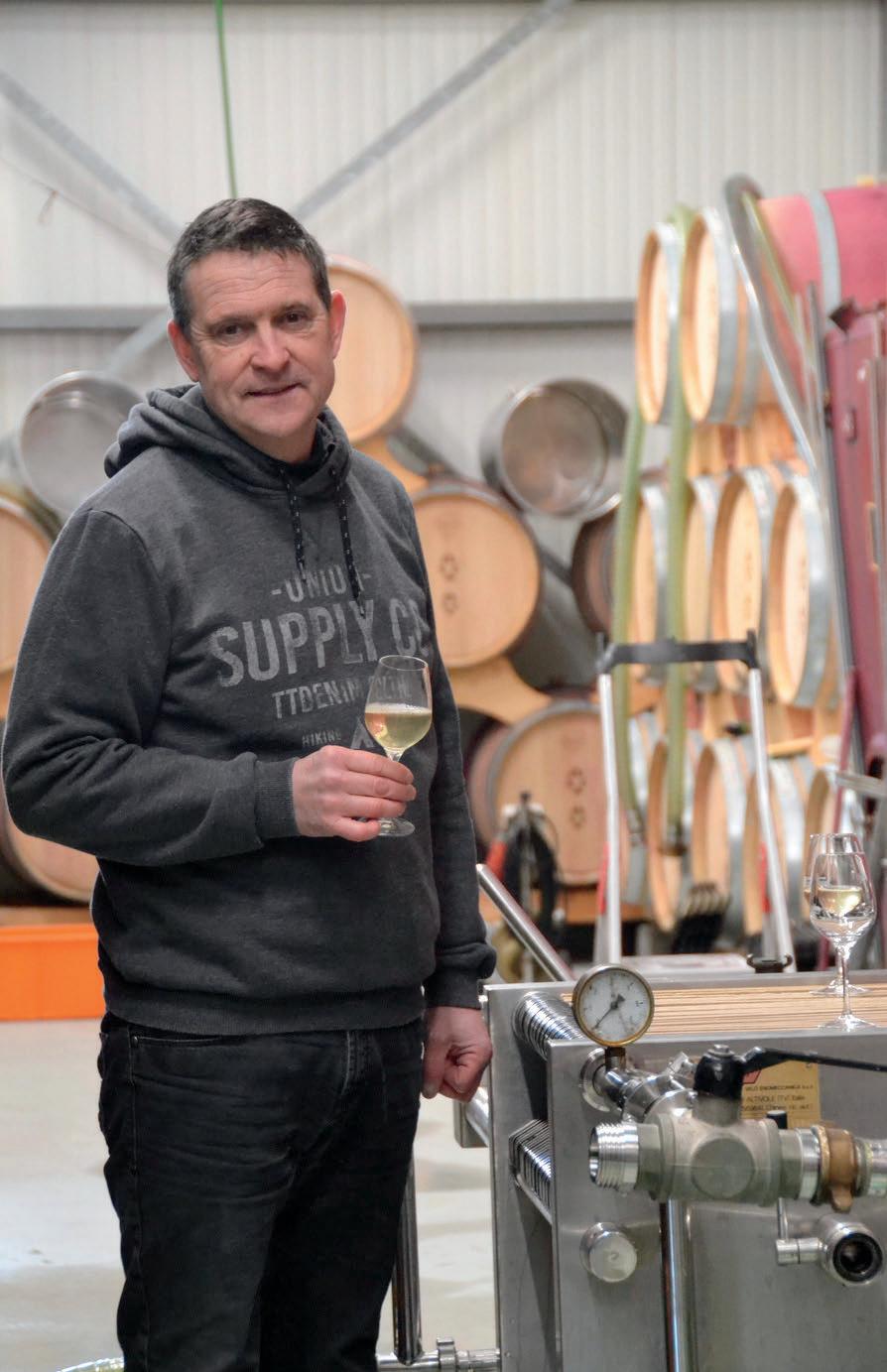 "Depuis 30 ans, nous travaillons aux côtésdesviticulteurslocauxenrécoltant puis en transformant le raisin ici à Anières. Notre marque de fabrique est un vin blanc d'assemblage aux notes fruitées, qui privilégie l'équilibre à la puissance.Leprochainmillésime2022à déguster Juste à côté promet richesse, structure,équilibreetvivacité!",Laurent.