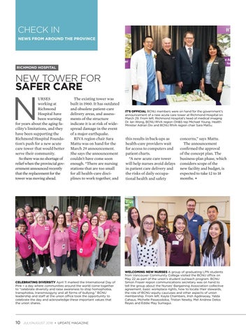 URSES working at Richmond Hospital have been warning for years about the aging facility’s limitations, and they have been supporting the Richmond Hospital Foundation’s push for a new acute care tower that would better serve their community. So there was no shortage of relief when the provincial government announced recently that the replacement for the tower was moving ahead.