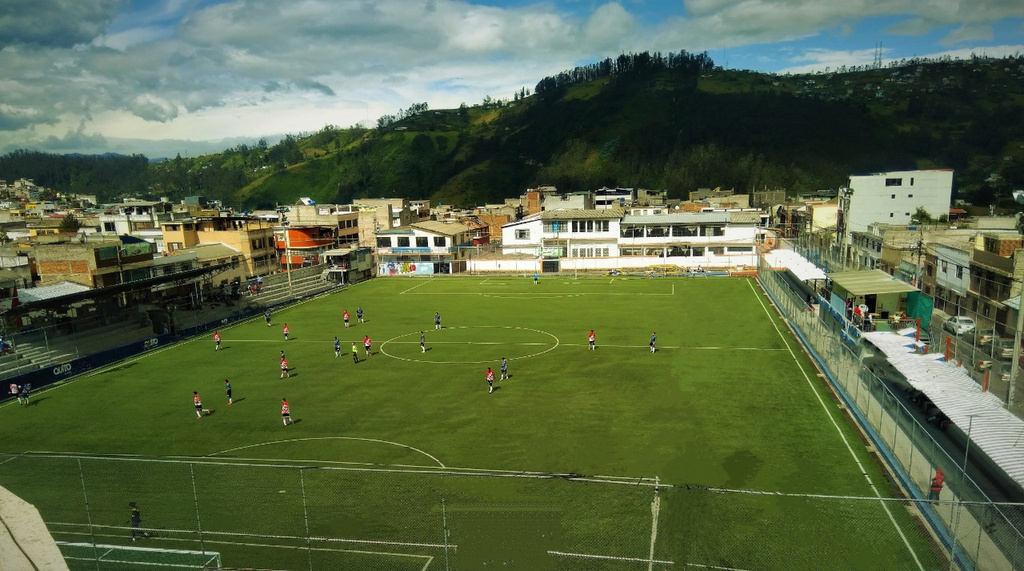 Su cancha, de material sintético la cual con el mantenimiento y su ubicación de privilegio, en el corazón del centro capitalino, son valores agregados para que el estadioseleconsidereentrelomejordelaMetrópoli. La proyección de lograr la cancha de alfombra sintética, se escenificó en el período de, Miguel Cárdenas, quien tuvo el aportedelex-alcaldedeQuito,MauricioRodasEspinel.