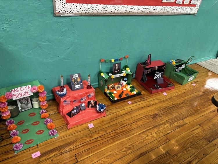 Last week, Mrs. Holder had her high school Spanish students make ofrendas for Día de los Muertos. Mrs. Holder has been having her students make ofrendas for 3 years. Most of the ofrendas were for celebrities, and some were for family members.