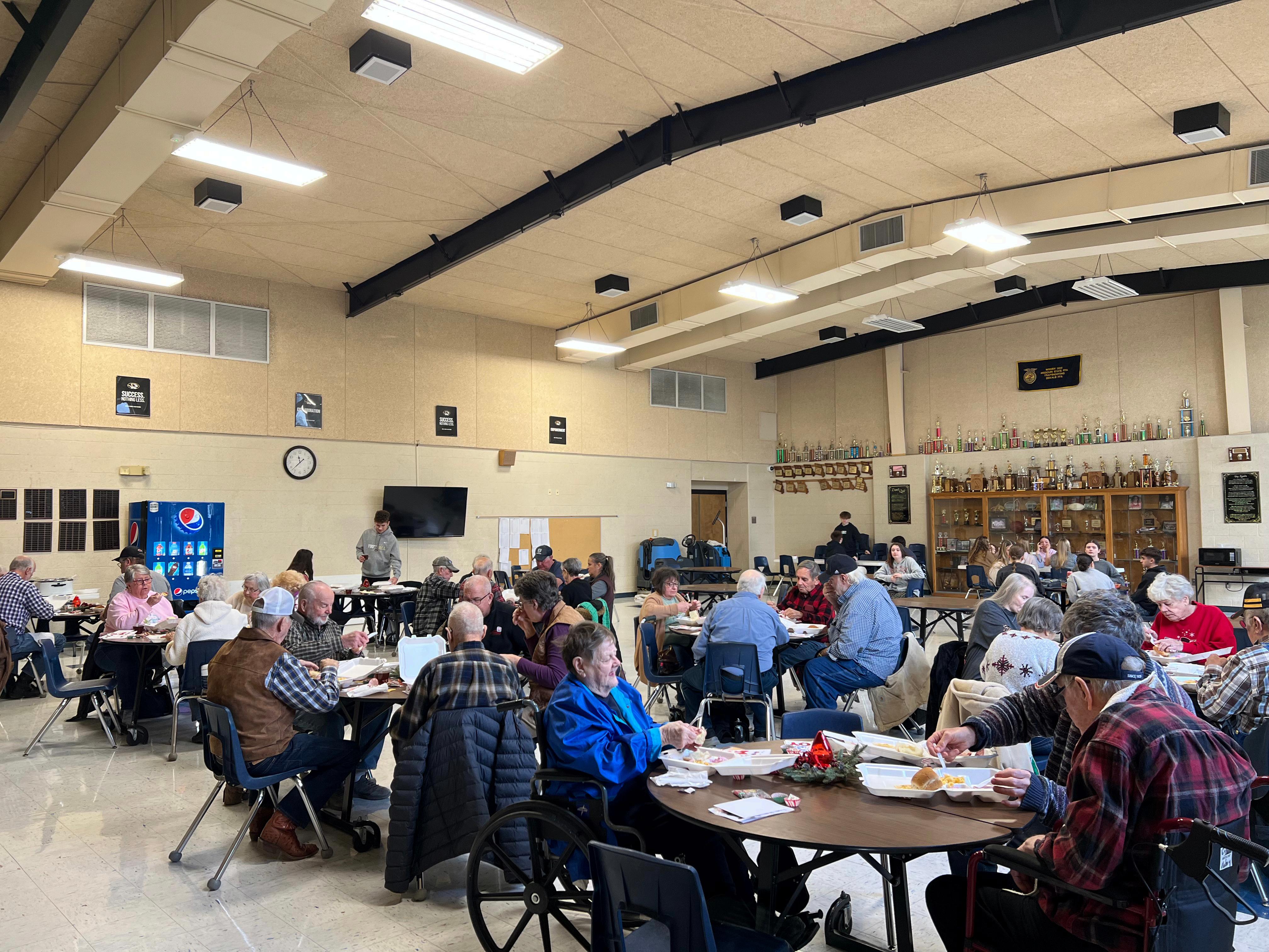 On Wednesday, December 10th, the Golden Oldies group travelled to the high school instead of eating lunch at the community center in DeKalb Typically, groups from the school go to the community center to serve the lunch that Vicki Sampson and others prepare once every month. Our National Honor Society members served up a lunch of ham, mac and cheese, and cranberry salad, follo ed by the choice of carrot cak ed velvet cake for dessert and that Golden