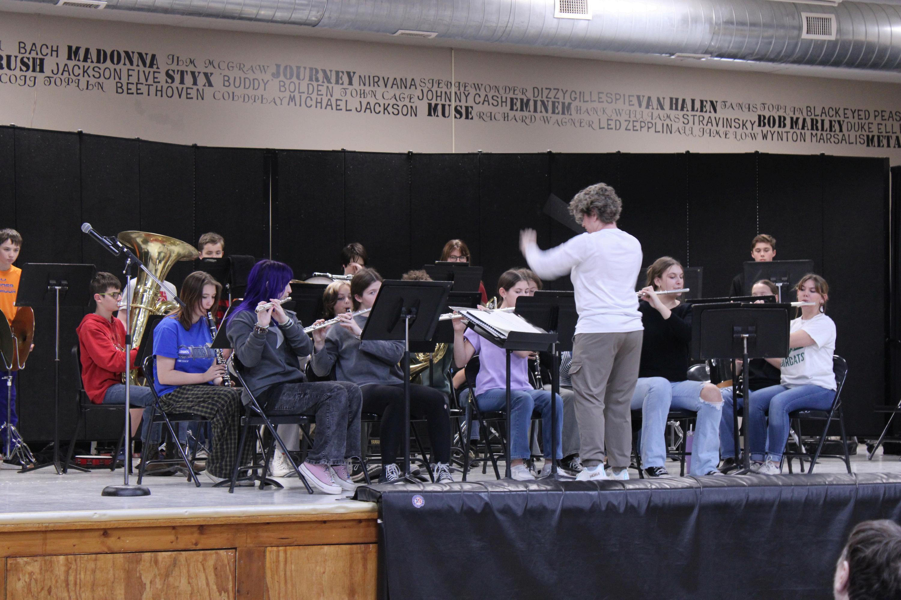 Pictured: Mrs King directs Winter Concert after Golden Oldies lunch