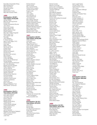 Participation: 22.54% Total dollars: $160,208 William Berberich Leroy Blasi Rev. Marvin Boes William Brooke, Ed.D. Joan Carvalho Culbertson Sylvia Hauser Daletski Dean Diederich Dennis Diederich, M.D. John Dooling, Sr. Dolores Stover Eck Donald Eilert Elmer Fangman Thomas Flanagan Robert Geist Marlene Rapalino Graham Edmund Grewe Joseph Hattrup Jeanine Diederich Hummell Theodore Kelly Albert Kocour Patrick Kramer Arthur Miller W. Edward Moore Gary Morgan David Moritz Yvonne LeMoine Muller James Nordhus John O’Gara, M.D. Stephen Penny Edward Pillar Margaret Gulde Rettenmaier Mary Hill Riedel Maureen Gibbons Sadowski James Scheid Donald Schmidt Patrick Schmiedeler Leo Stueve Glenn Torline Catherine Van Compernolle Van Ryckeghem Shirley Scarafiotti Vick
