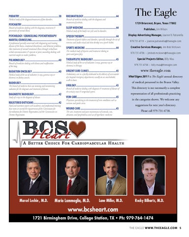 www.theeagle.com Vital Signs 2011 is The Eagle’s annual directory of medical personnel in the Brazos Valley. This directory is not necessarily a complete representation of all professionals practicing in the categories shown. We welcome any suggestions for next year’s directory. Please call 979-731-4738.